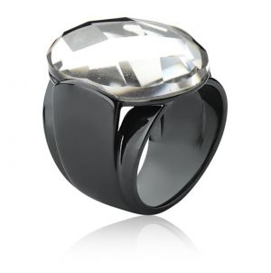 Anel grafite cristal multifacetado. Peça marcante, com cristal em forma oval, lapidado com múltiplas faces, que brilham de acordo com a movimentação da peça.