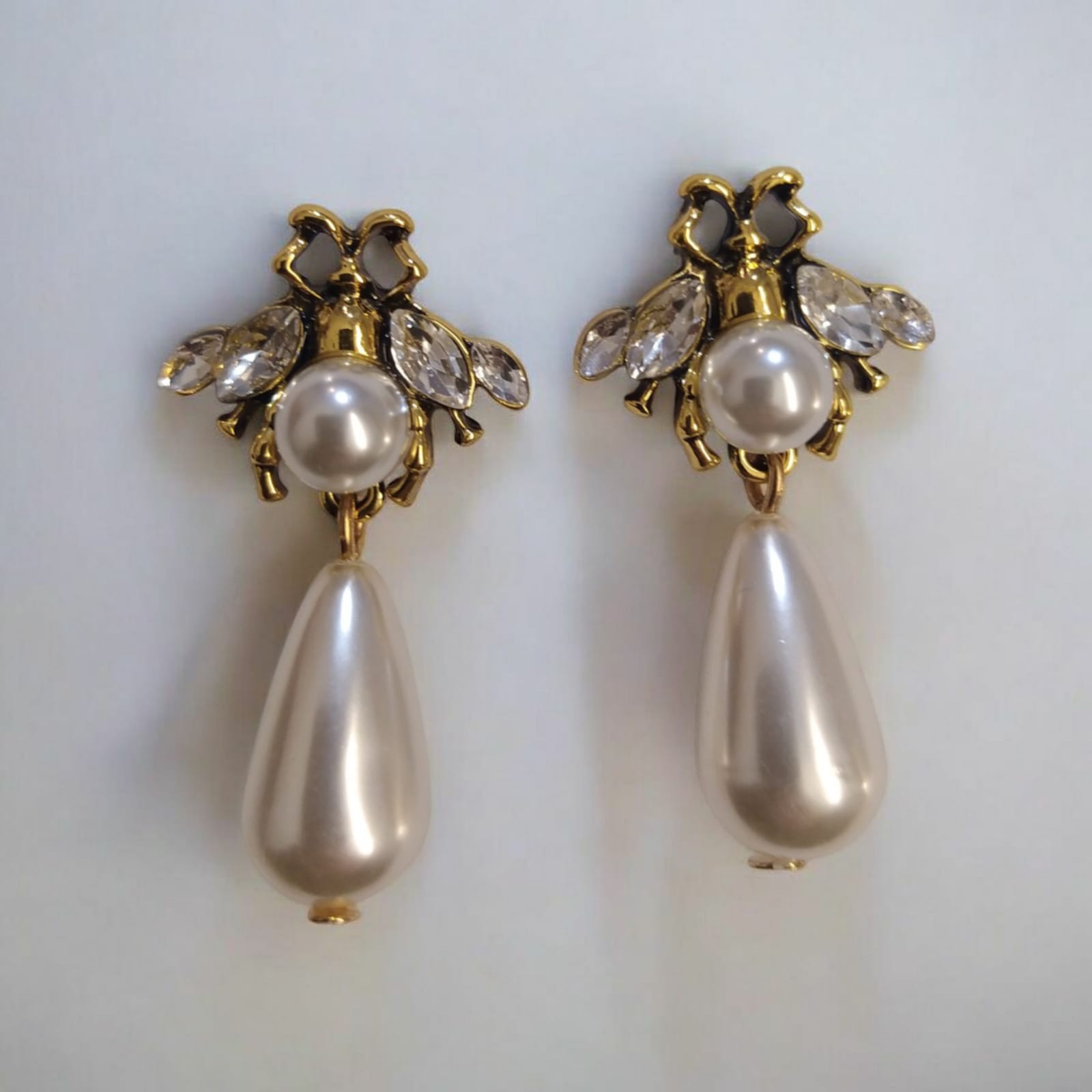Delicado e cheio de charme, o Brinco Abelha com Pingente Perolado combina a simbologia da abelha — associada a prosperidade e energia — com a sofisticação da pérola. O design detalhado da abelha traz um toque lúdico e elegante, enquanto o pingente perolado acrescenta movimento e luminosidade ao acessório.