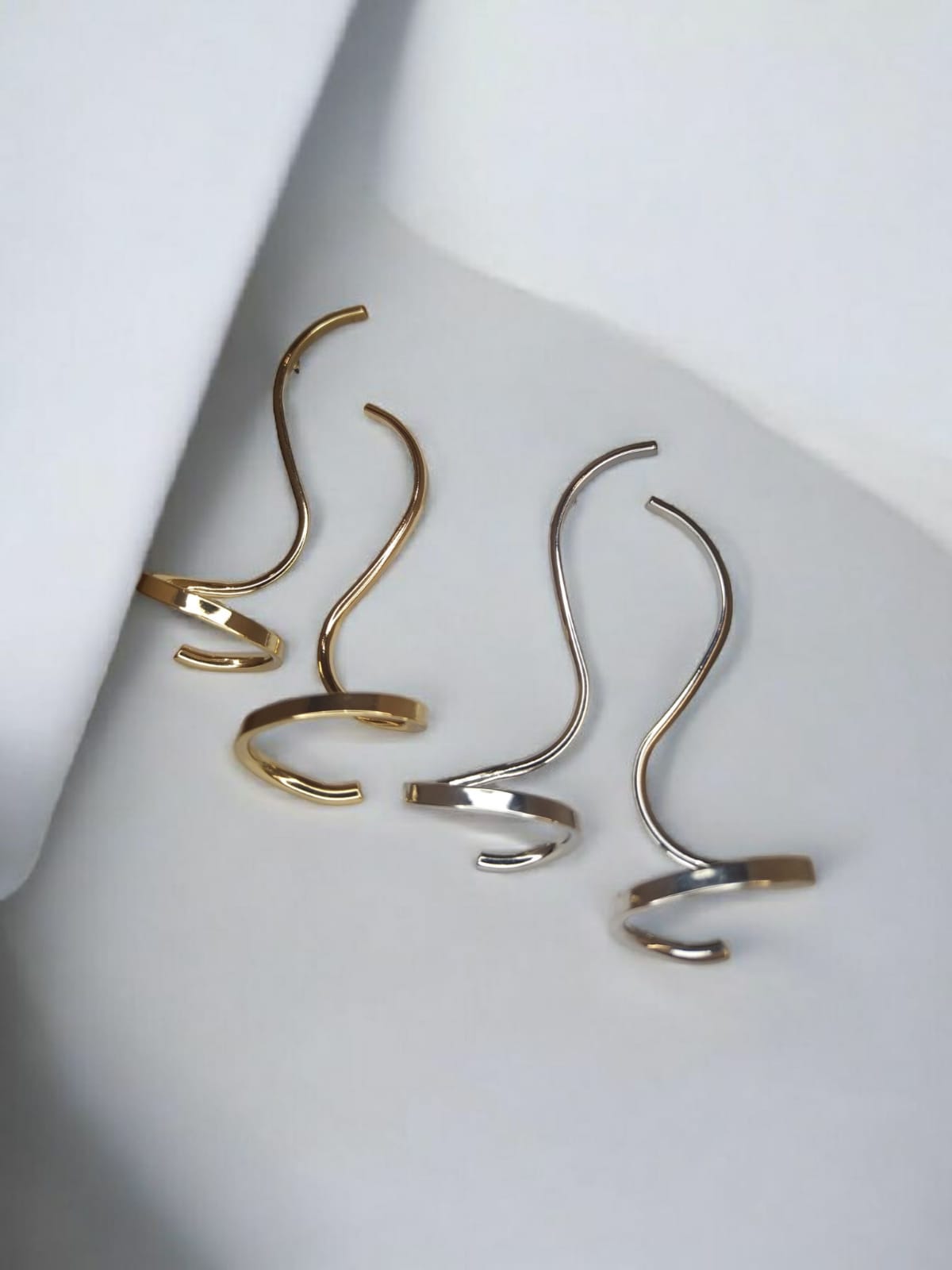 Brinco alongado sofisticado, com um design elegante e fluido. Sua estrutura delicada se estende suavemente até o final, onde uma charmosa espiral adiciona um toque moderno e dinâmico. Ideal para compor looks elegantes e cheios de personalidade.