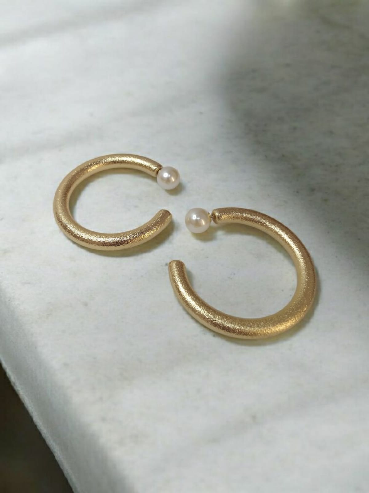 Elegante e sofisticado, este brinco de argola grande é perfeito para quem busca um acessório moderno com um toque clássico. A argola possui acabamento escovado, conferindo uma textura suave e um brilho discreto que valoriza qualquer look. Na parte da tarraxa, um delicado detalhe em pérola acrescenta um charme refinado.