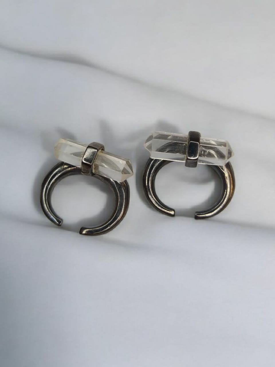 Brinco moderno e estiloso, com estrutura metálica e detalhe em cristal lapidado, trazendo um toque sofisticado e místico. O design marcante combina elegância e originalidade, perfeito para quem busca um acessório autêntico e cheio de personalidade.