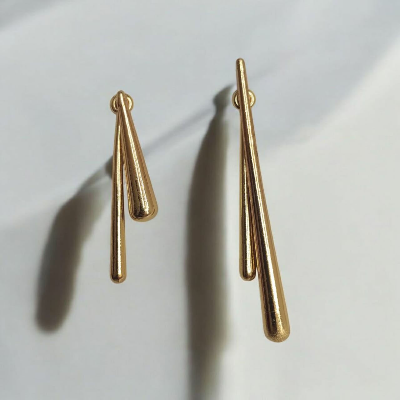 Brinco grande com quatro gotas finas longas, de tamanhos diferentes. Uma peça Valentina Toda Fina diferenciada, que permite um uso versátil e criativo, com um tamanho diferente em cada orelha, ou mesmo o uso de dois pares em cada orelha. Disponível nos banhos dourado e grafite.